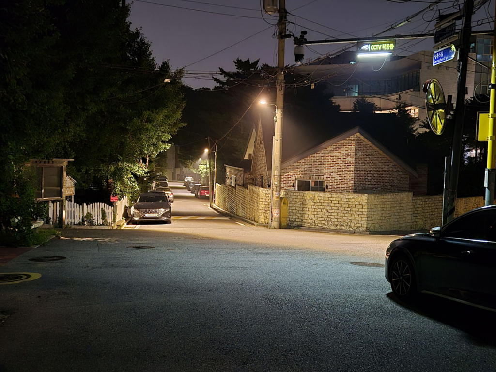 Security cameras are common, even in small streets. Residential areas are dense, so there are usually lights on in nearby homes. Public transportation runs late. Convenience stores stay open. Streets rarely feel completely empty.